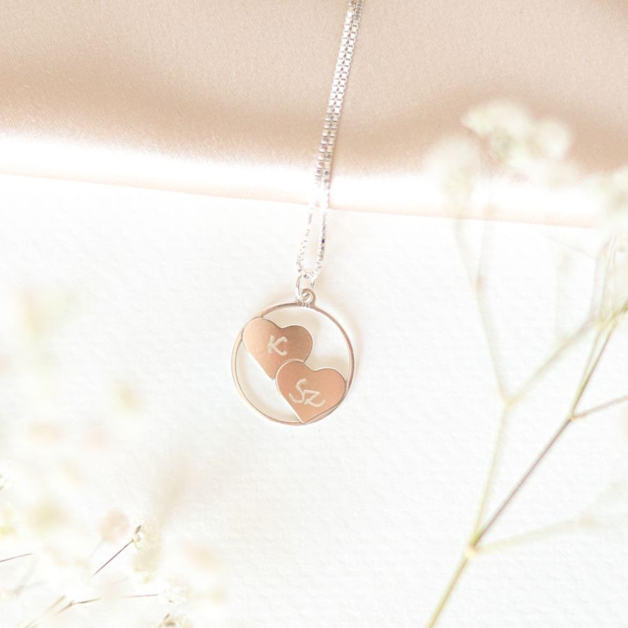 A Double Heart ezüst nyaklánc egy különleges, kézzel gravírozott ékszer, amit kifejezetten kétgyermekes anyukáknak álmodtam meg. A két összefonódó szív egy édesanya és gyermekei közötti szeretet jelképe – örök emlék, amely minden nap viselhető.