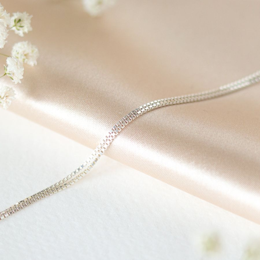 A nyakláncot teljesen egyedivé teheted: választhatsz sima vagy pöttyös mintájú láncot, valamint meghatározhatod a számodra ideális hosszúságot is. Igény esetén egyedi születéskövekkel is kiegészítheted az ékszert.