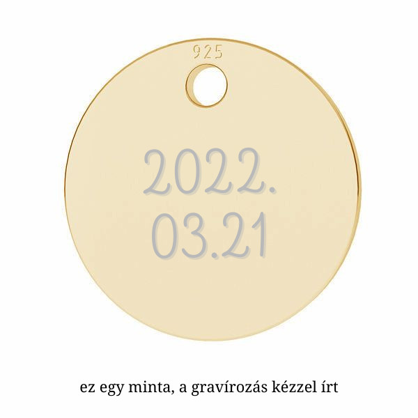 A medált egyedileg kézzel gravírozom, így teljesen személyre szabottan választhatod ki a megfelelő feliratot. Kérhetsz rá 1 betűt, 2 betűt & vagy + jellel elválasztva (például: A&B, A+B), nevet maximum 6 betű hosszúságig, és dátumot (születésnap, évforduló, különleges pillanat) is.